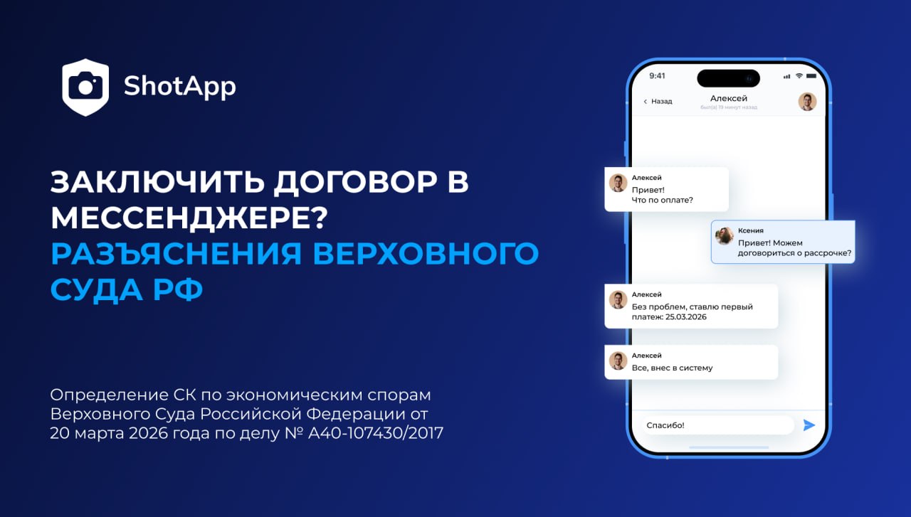 Верховный суд России подтвердил, что договор в письменной форме может быть заключен путем обмена электронными документами, включая переписку в мессенджерах. Главное условие — возможность воспроизвести содержание сделки на материальном носителе в неизменном виде.